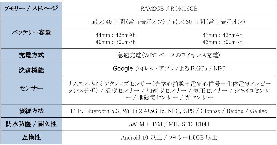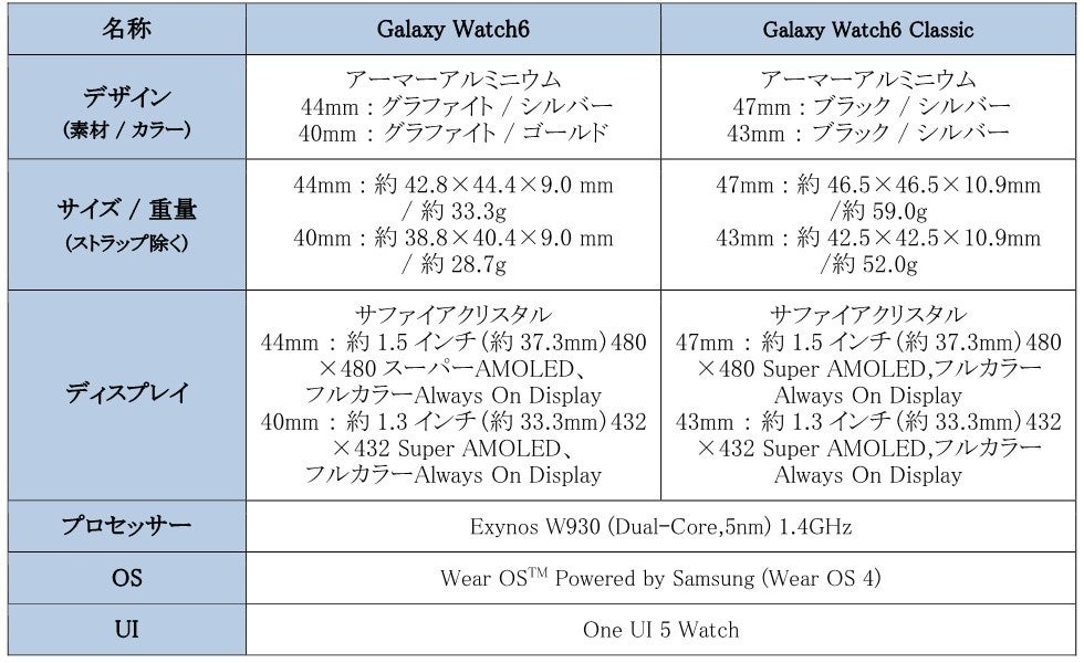 <主な仕様 : 「Galaxy Watch6シリーズ」>
