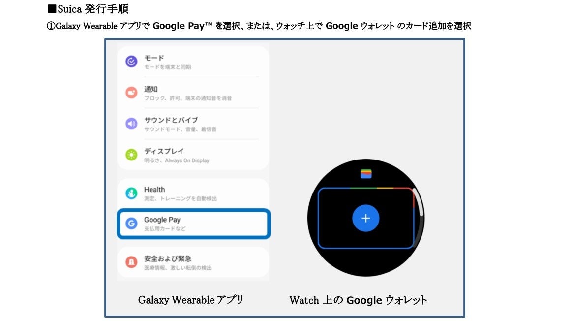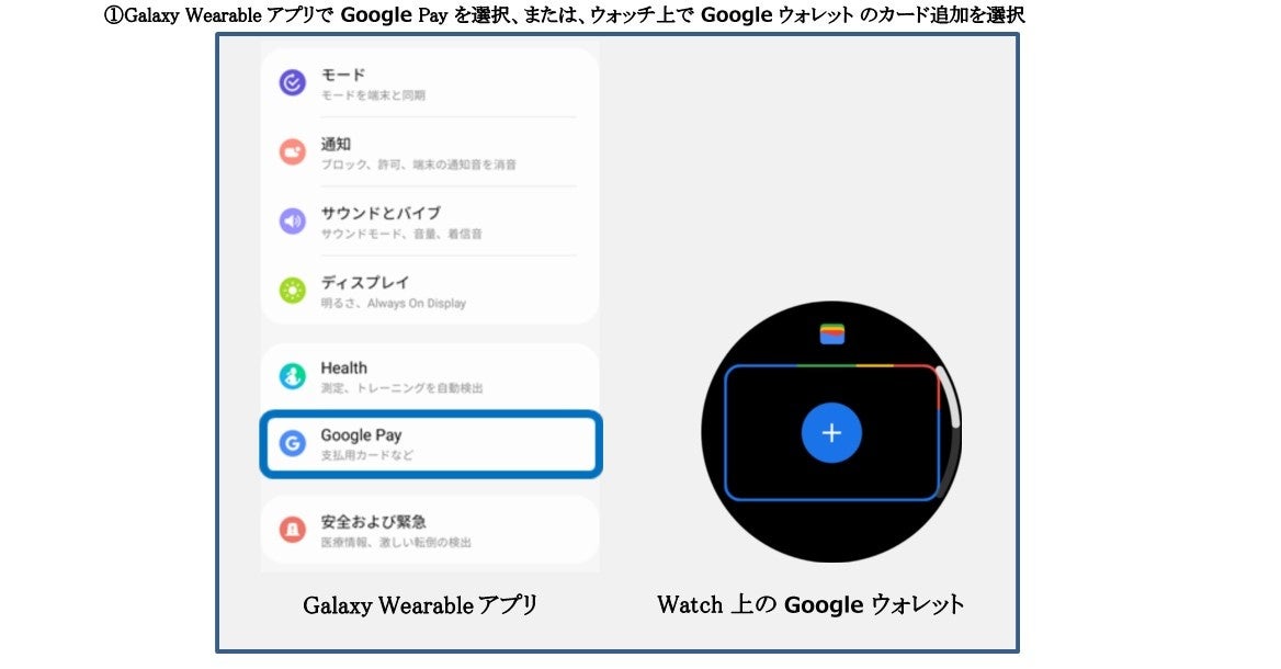 ※Watchのソフトウェア、Galaxy Wearable アプリ、Google ウォレットを最新の状態にアップデートして頂く必要があります。