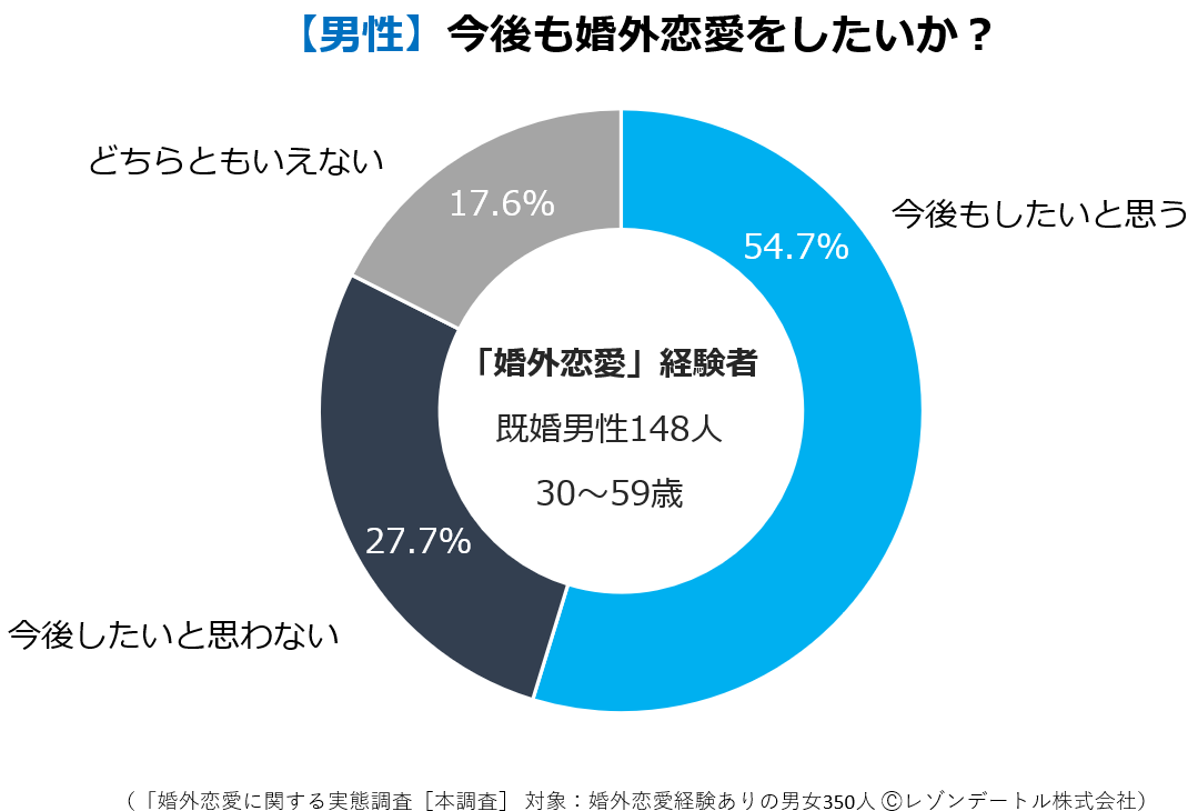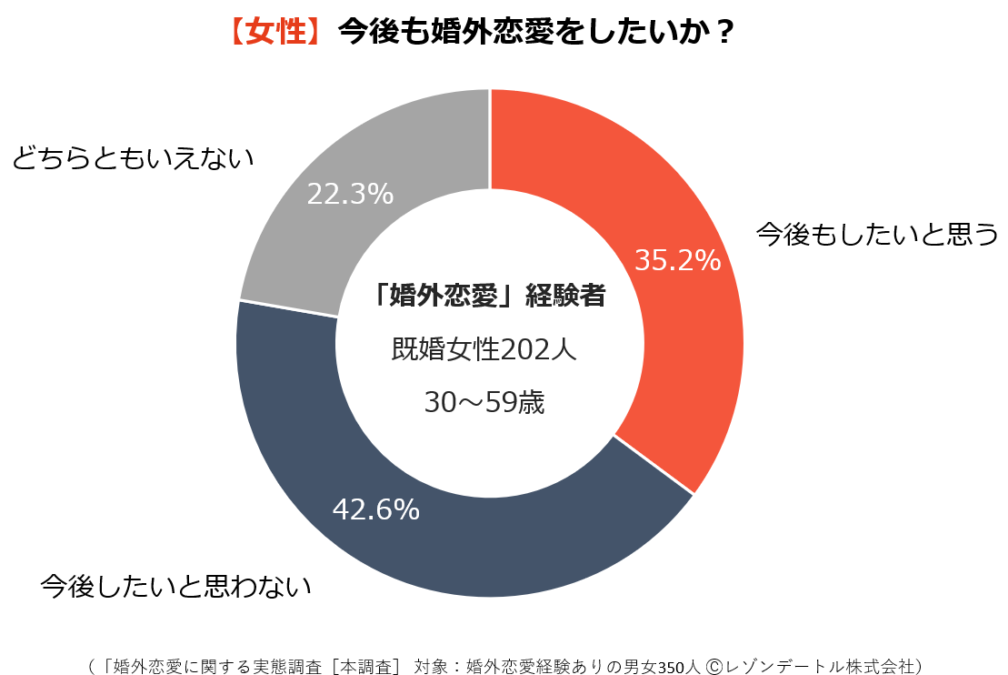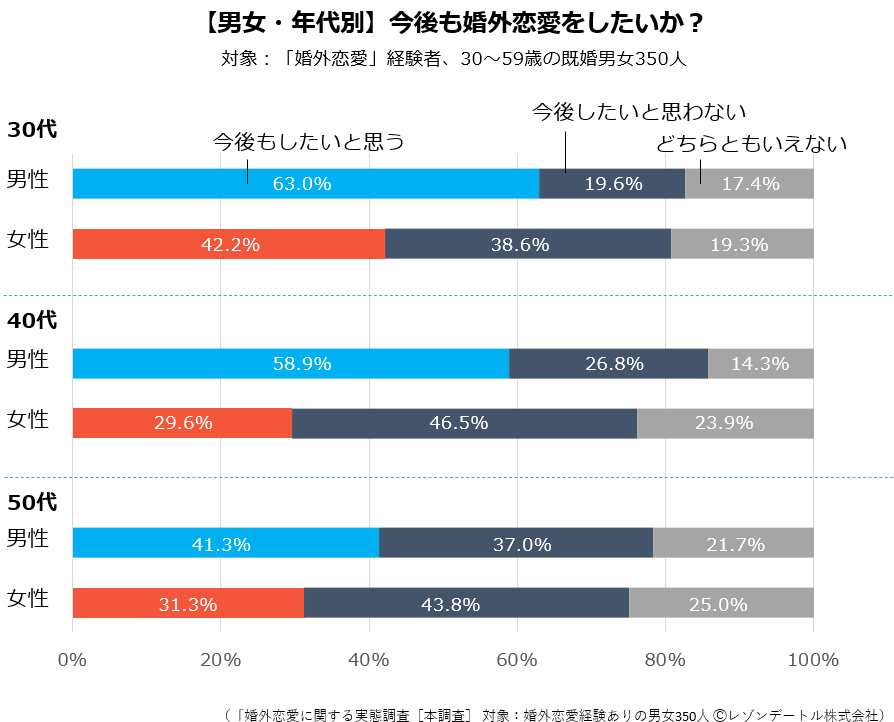 しかし、「今後も婚外恋愛をしたいか」と尋ねてみると、興味深い結果となりました。