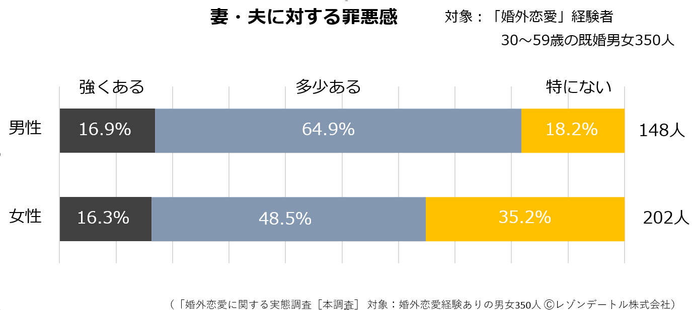 婚外恋愛の経験者たちは、妻や夫に罪悪感をもっているのでしょうか。尋ねてみたところ、興味深い結果となりました。