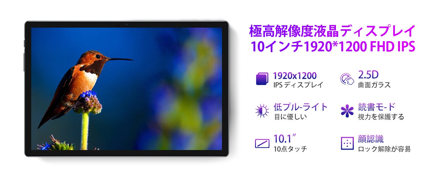 10インチ / Android 12 / 8GB RAM+128GB ROM+1TB拡張 / FHD IPSディスプレイ / Widevine L1 / 4G LTE SIM通話+WIFIモデル / 顔認識 / 3.5mmヘッドホン /GPSサポート / 技適マーク取得