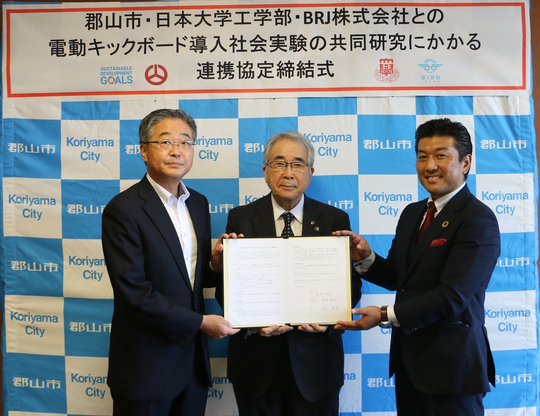 マイクロモビリティサービス「BIRD」を日本で展開するBRJ株式会社(読み方:ビーアールジェイ 本社:東京都港区、代表取締役/CEO:宮内 秀明、以下「BRJ」)は、電動キックボード導入にかかる社会実験実施において、市内道路運用上の安全性や有効性について調査検証することを目的に郡山市、日本大学工学部と共同研究についての連携協定を締結しました。