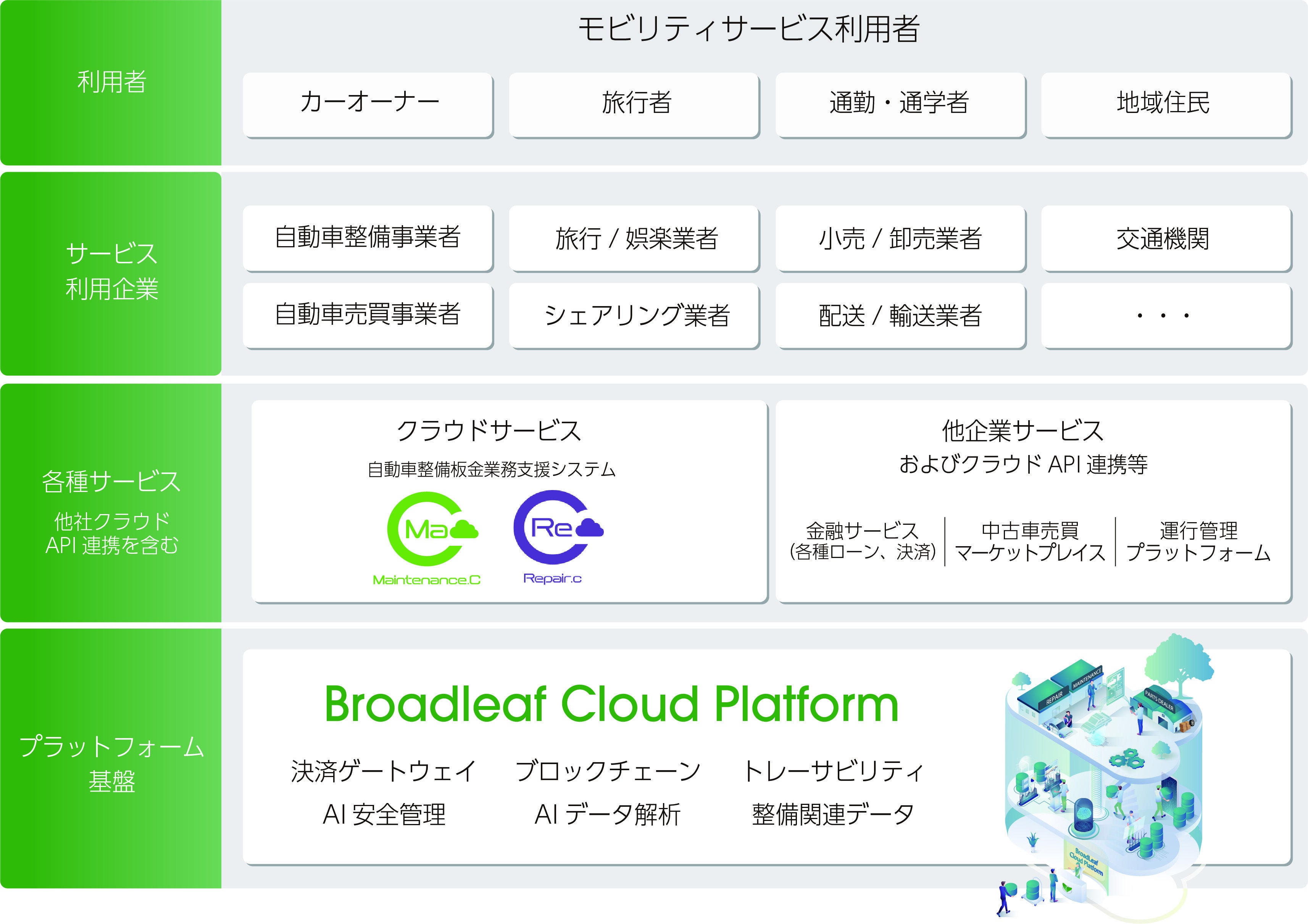 その中で既存のお客様業種にとどまらず、モビリティ産業を起点に新たな領域にチャレンジすることで、より多くの産業の事業者と共に豊かな社会を築くことを目指しており、重点施策のひとつである、クラウド基盤『Broadleaf Cloud Platform(以下BCP)』の開発キット(SDK)を使用する3rdパーティの連携先の拡大に取り組んでいます。