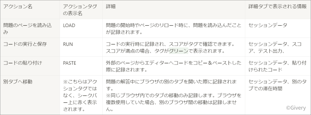 今回実装した「プレイバック機能」は、候補者の試験中のコーディングの過程や行動をログとして記録します。選考官がそれを再生することで、提出されたコードに至るまでのプロセスを確認できます。また、コピー&ペーストやタブ移動、エディタ画面からの離脱など、webにおける行動を視覚的に表示し、コーディング過程と合わせて確認することで、より正確に、ルールを守った受験が行われているかの判断をサポートします。