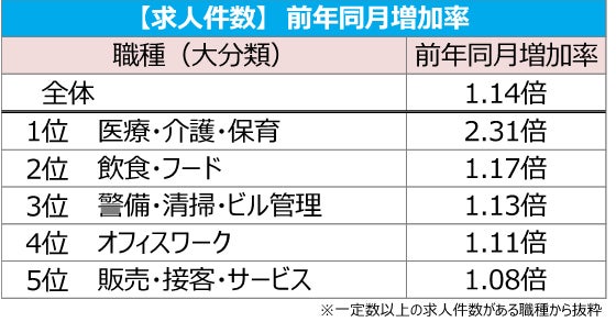 【図3】<全国>前年同月求人件数の増加率が高い職種TOP5