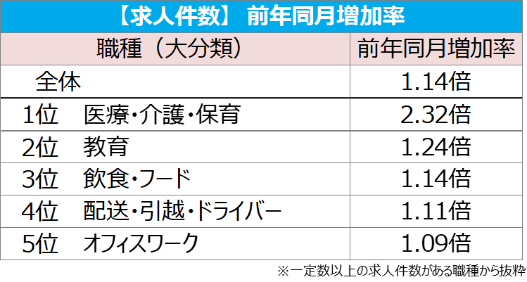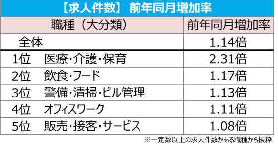 【図3】<全国>前年同月求人件数の増加率が高い職種TOP5