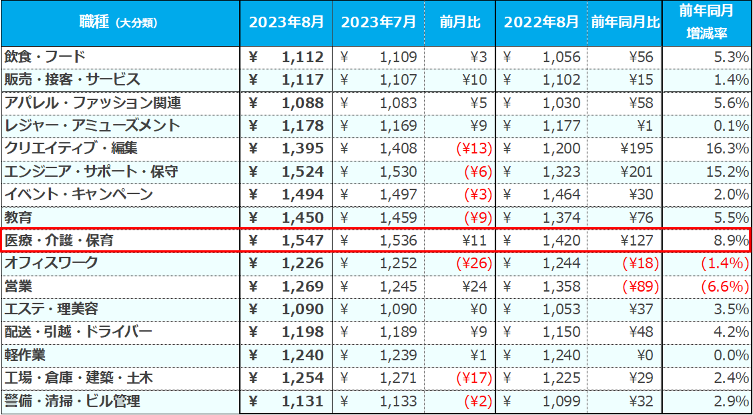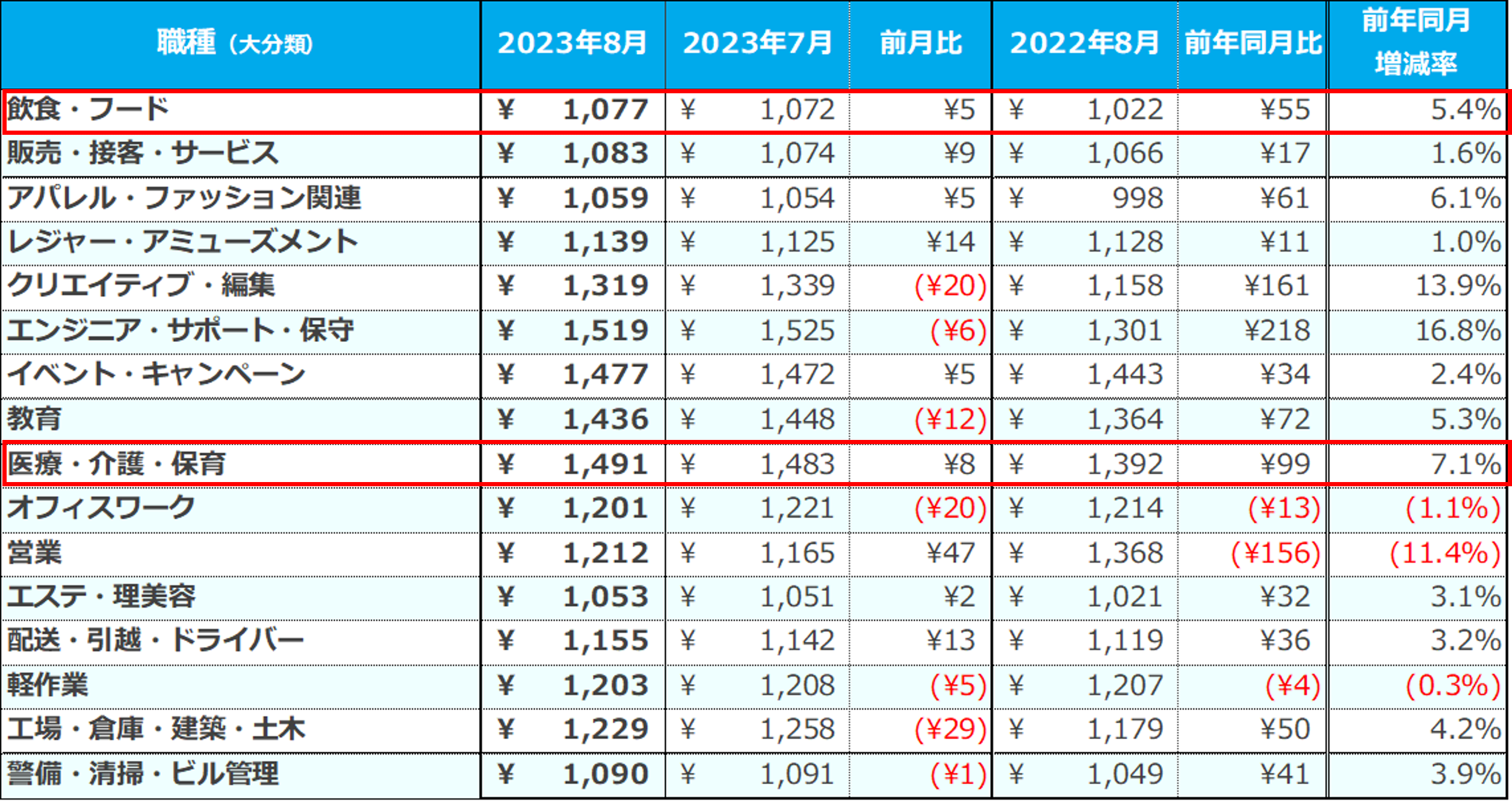 『2023年8月度 アルバイト・パート平均時給レポート』