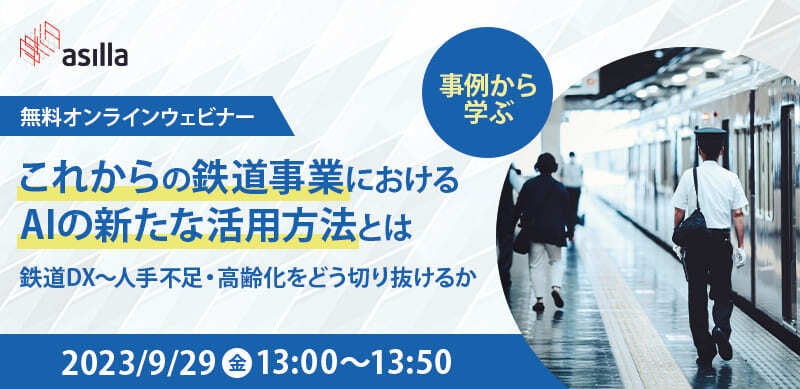 ■ウェビナー名:【事例から学ぶ】これからの鉄道事業におけるAIの新たな活用方法とは ■開催日時:9月29日(金) 13:00~13:50