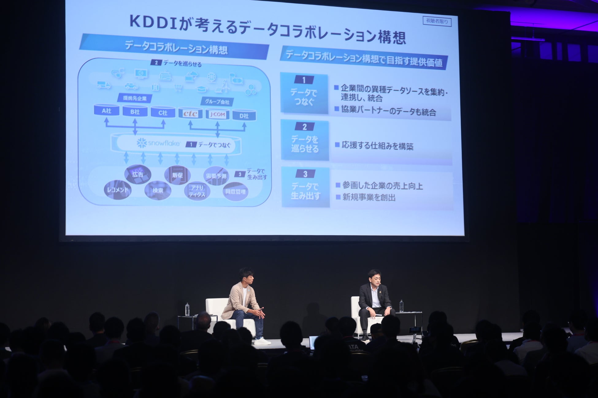 なお顧客事例として、KDDI株式会社より執行役員常務 竹澤 浩氏と執行役員 藤井 彰人氏が登壇し、同社のデータコラボレーション構想について解説をしました。