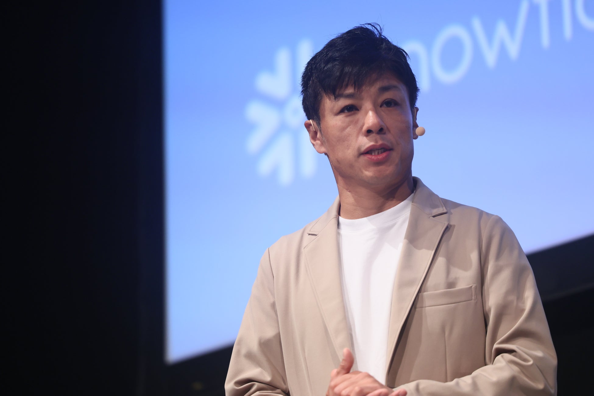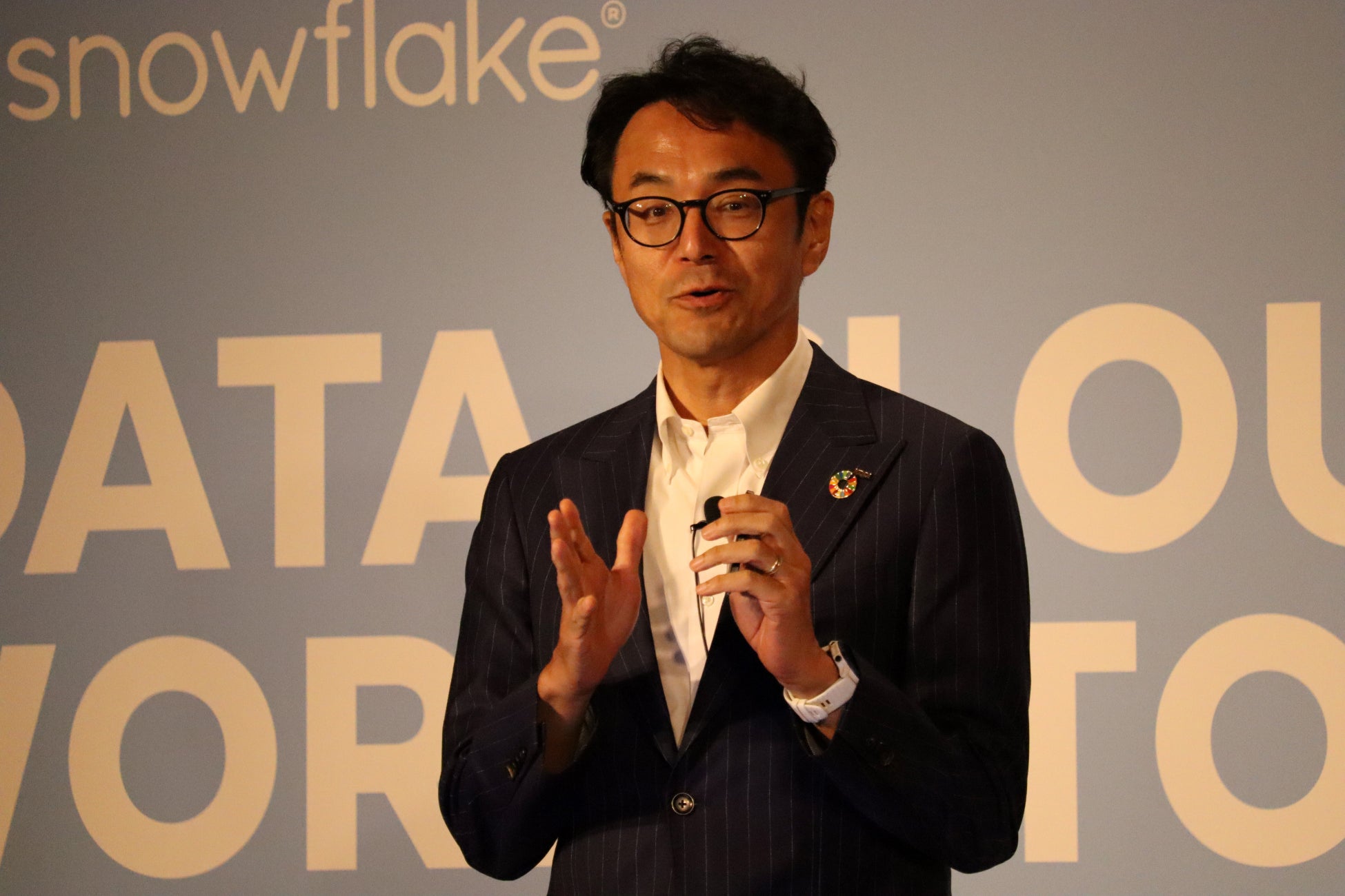 オープニングの基調講演で社長執行役員の東條 英俊は、「6月にラスベガスで行われたSnowflake Summitでは、Snowflakeの沢山のイノベーションが発表されました。日本のお客様にもこの内容を伝え、事例やパートナー様のソリューションも1日かけてご紹介していきたい」と挨拶しました。またラスベガスでの発表は、すでに日本でもスタートしている点も強調しました。