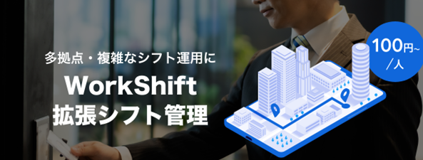 「拡張シフト管理」は、複数拠点で働くスタッフの煩雑なシフト管理業務を大幅に効率化します。通常のシフト管理に加え、勤務場所ごとに役割別人数情報を確認できるため、拠点間の応援業務を支援して人手不足を解消します。また、勤務場所別で加給計算の設定ができるため、細やかな多店舗型勤怠管理を実現します。なお、この機能は、2024年4月からの提供開始となります。