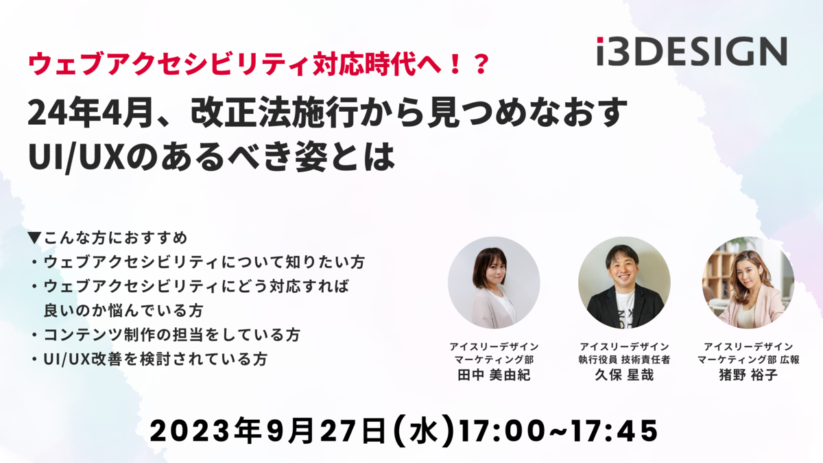 ウェブアクセシビリティってそもそも何?といった基礎から、UI/UX改善におけるウェブアクセシビリティの実現について、そして、企業はどのように対応すべきなのかまで解説していきたいと考えておりますので、是非ご参加ください。