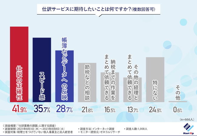 仕訳サービスには、正確性とスピードを重視する方が多いことがわかりました。
