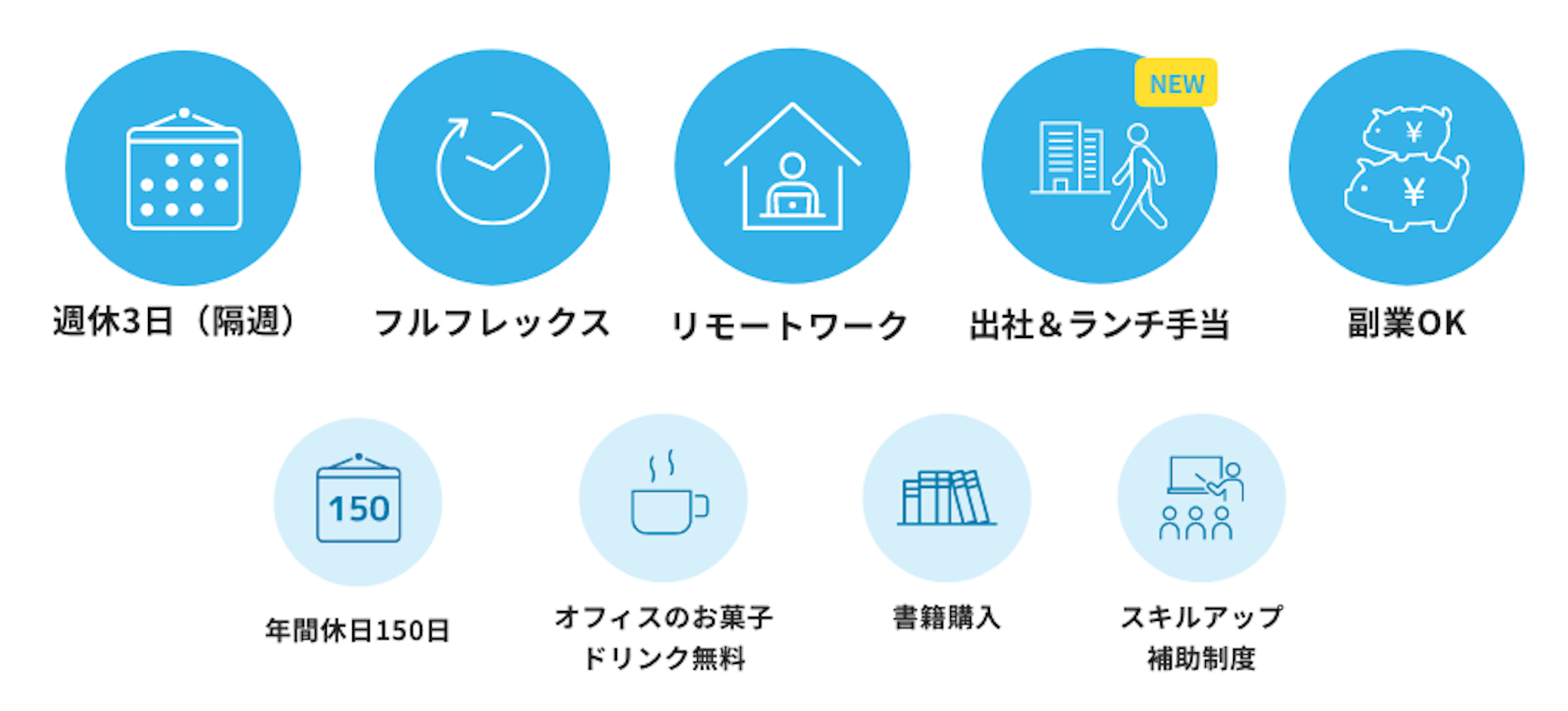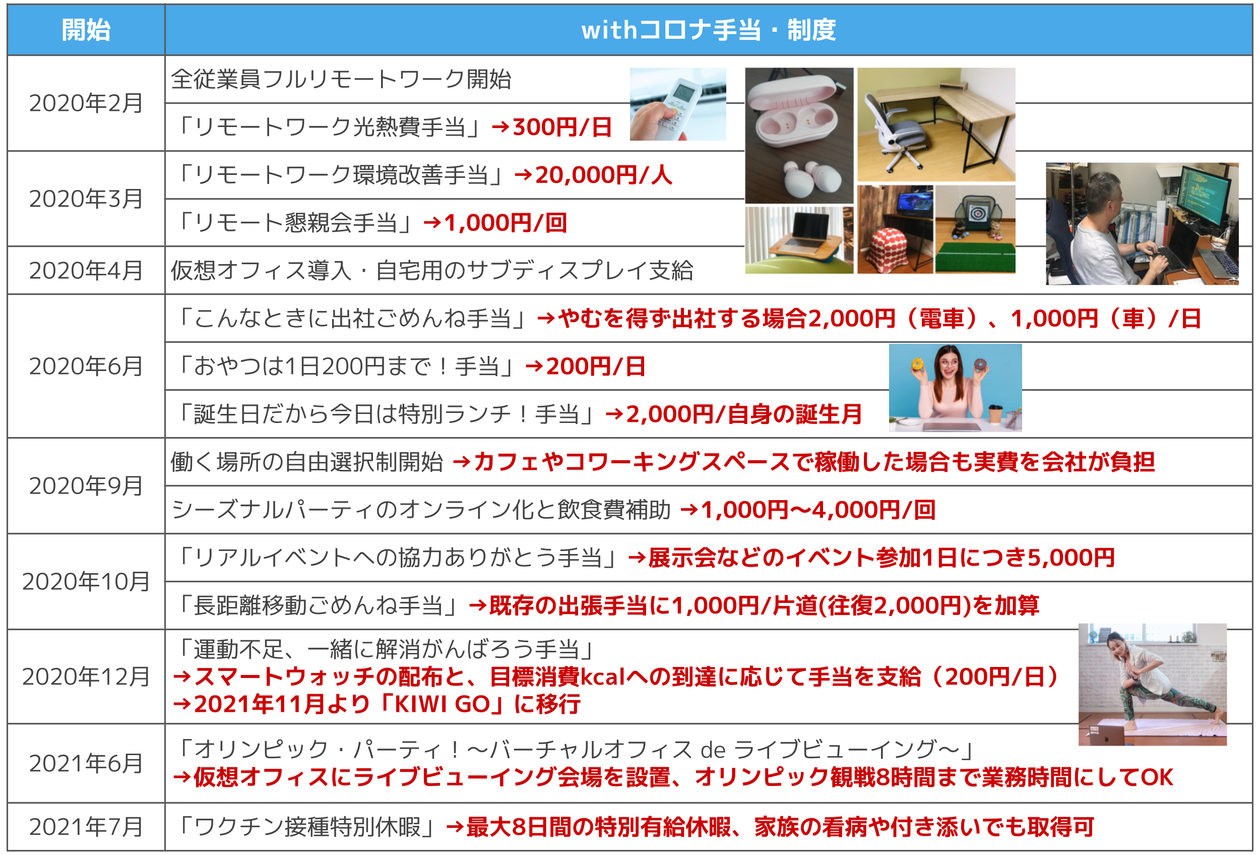 ・追加支給:出社時ランチ手当1日500円(上限10日分/月)
