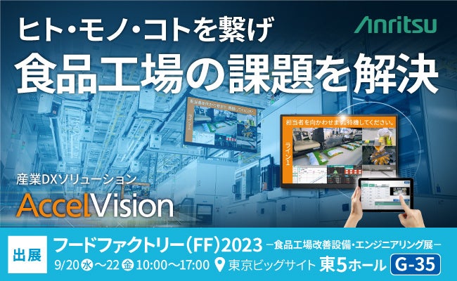 アンリツ株式会社(社長 濱田 宏一)は、産業DXソリューション『AccelVision(アクセルビジョン)』を食品工場の設備改善・エンジニアリングに関わる設備・機器が集う専門展示会「フードファクトリー2023」に出展します。