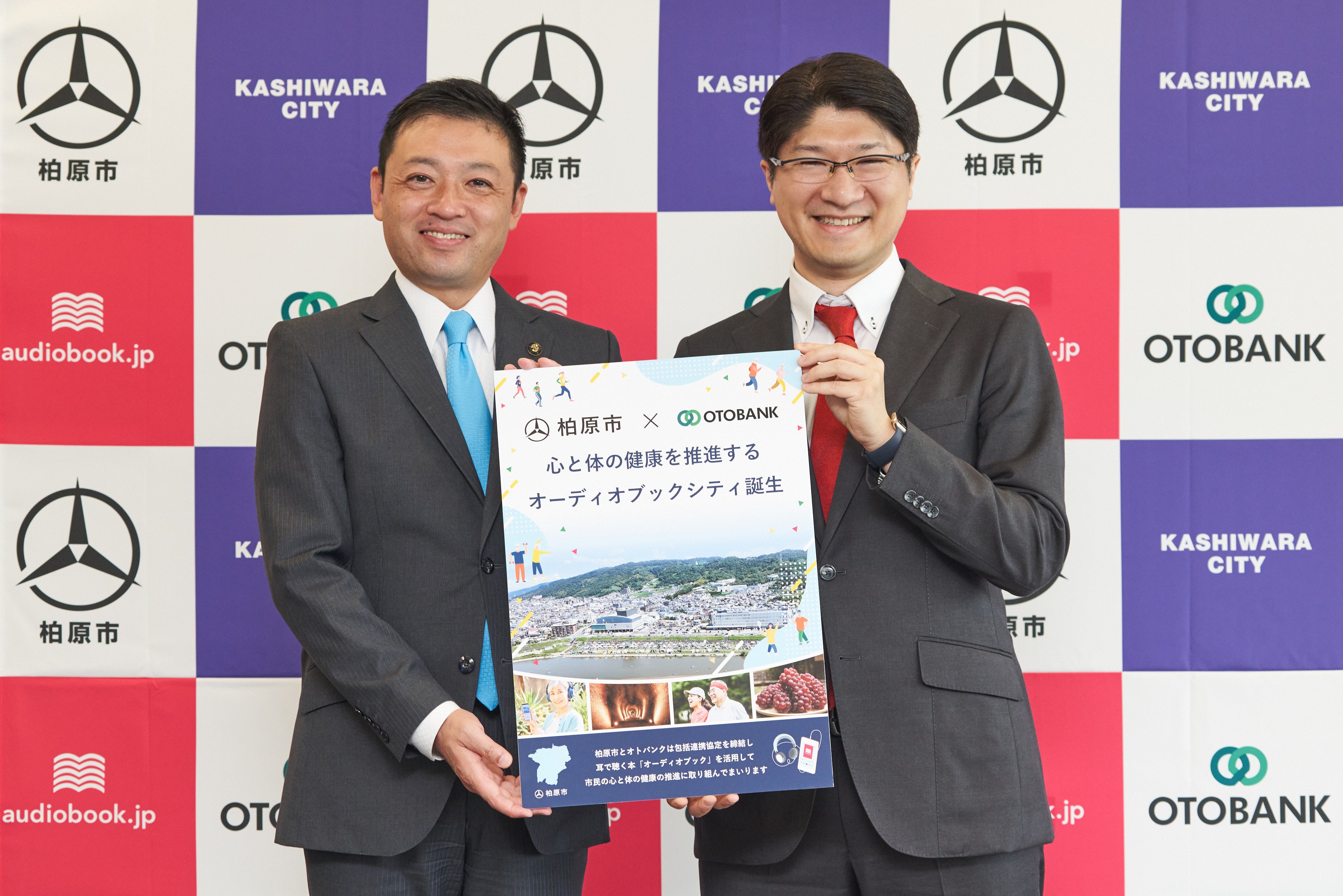 これらを背景に、オーディオブックを活用し、市民の心と体の健康づくりに取り組みを行っていくことを目的に、2023年6月29日に大阪府柏原市とオトバンクは包括連携協定を締結いたしました。