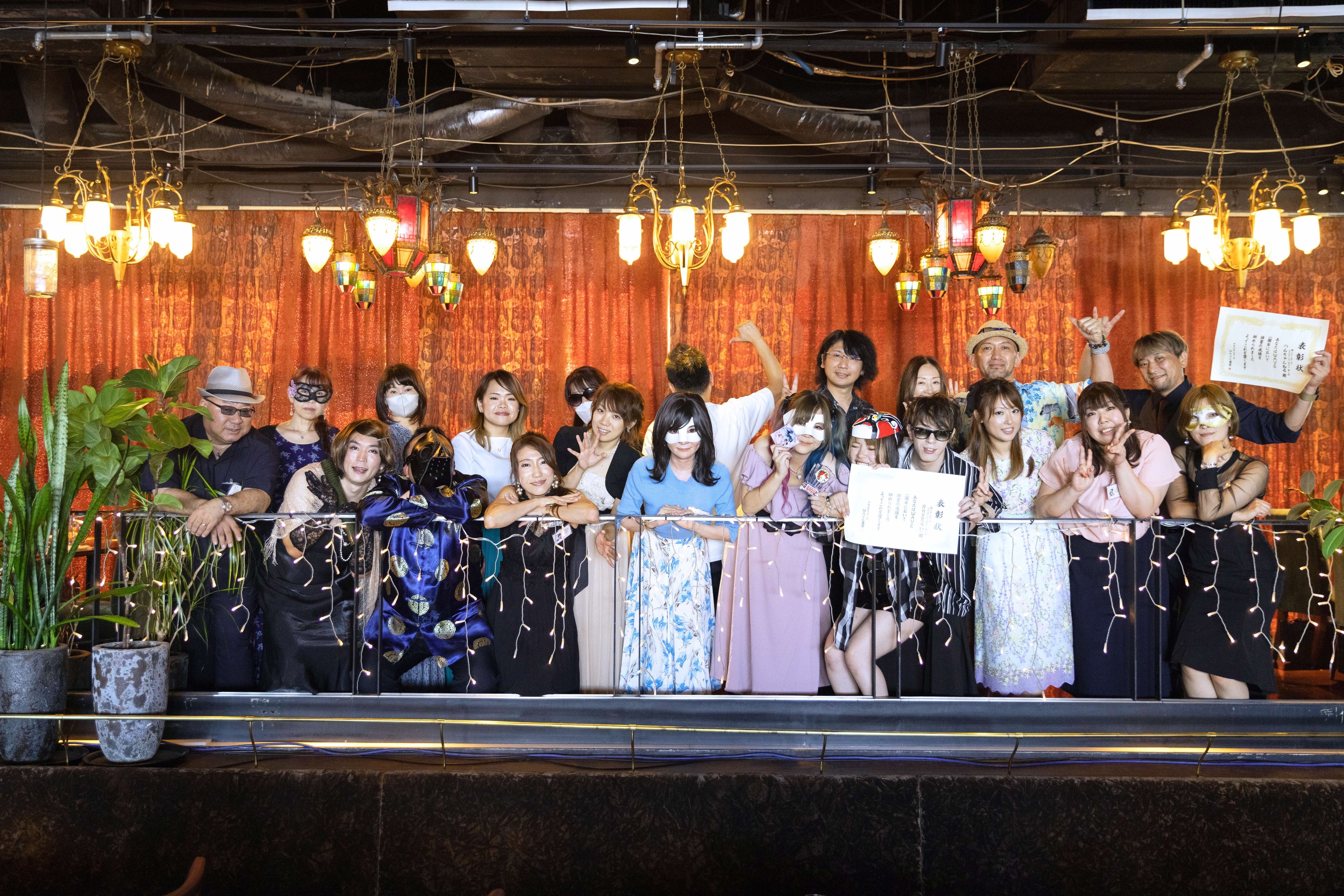 『1周年記念祭・Bestスピーカーオフラインパーティー』は、都内某所の見晴らしの良いレストランを貸し切ってスタート。全国各地から集まった約20名のトップスピーカーは、普段の配信の際も顔出しを行っていないため、“仮面”をつけて参加する姿も多く見られました。