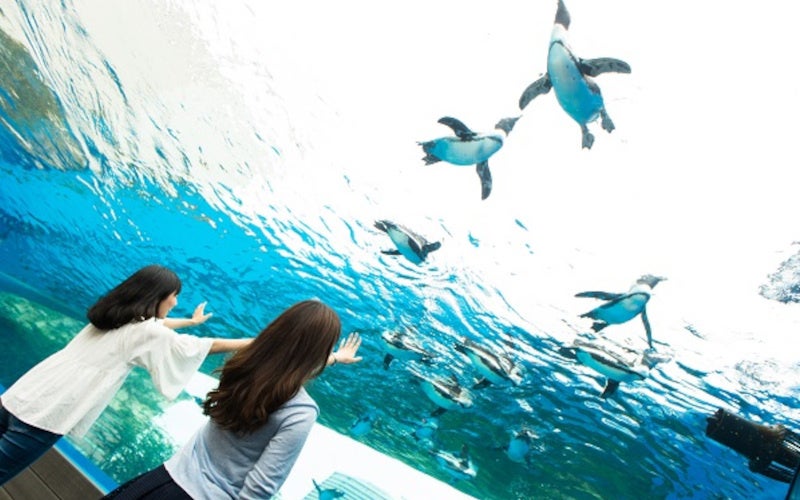 都会のビルの高層に、まさに「天空のオアシス」が広がります。空・光・水・緑が感じられるマリンガーデンには、まるで都会の空を飛んでいるかのような世界初展示の天空のペンギンと、自然のままの環境を再現した草原のペンギンの姿を見ることができます。日没後は幻想的な光りに包まれ癒しの空間に変化します。