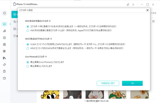 iCareFoneを利用して、iPhone内の写真をPCにエクスポートした際、自動的に「.JPG」形式に変換しPCに転送します。