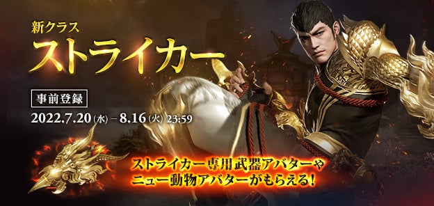 8月アップデートにて実装を予定している新クラス「ストライカー」の事前登録イベントが開始致しました。簡単なアンケートに回答するだけで、ストライカー専用武器アバターや、ニュー動物アバターなどを「ストライカー」実装後に獲得することができます。