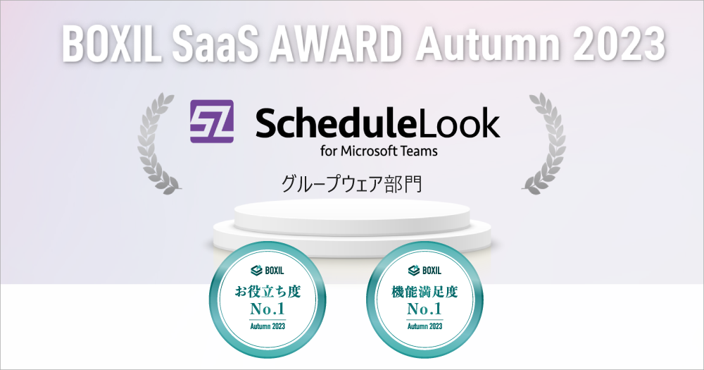 株式会社 ビービーシステム(東京本社:東京都港区、大阪本社:大阪市中央区、名古屋支社:名古屋市中区、代表取締役:黒澤 敏彦、以下:ビービーシステム)が提供する「ScheduleLook for Microsoft Teams」 は、スマートキャンプ株式会社(以下「スマートキャンプ」)が主催する「BOXIL SaaS AWARD Autumn 2023」のグループウェア部門で「機能満足度No.1」「お役立ち度No.1」に選出されました。 前回のBOXIL SaaS AWARD Summer 2023に続く受賞となります。