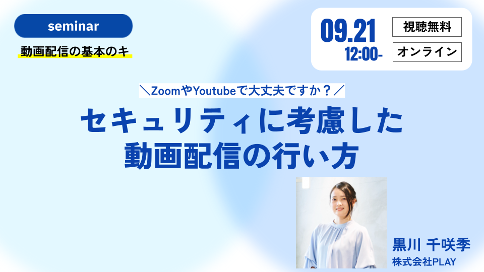 この度株式会社PLAYは9月21日(木)12時〜「\ZoomやYoutubeで大丈夫ですか?/セキュリティに考慮した動画配信の行い方」の申し込みページを公開しました。