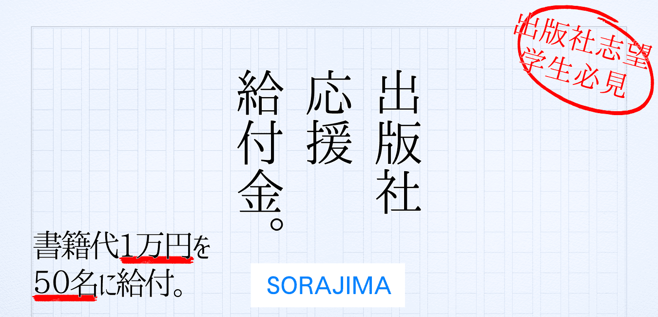 名称 :「出版社就活応援給付金supported by 株式会社ソラジマ」