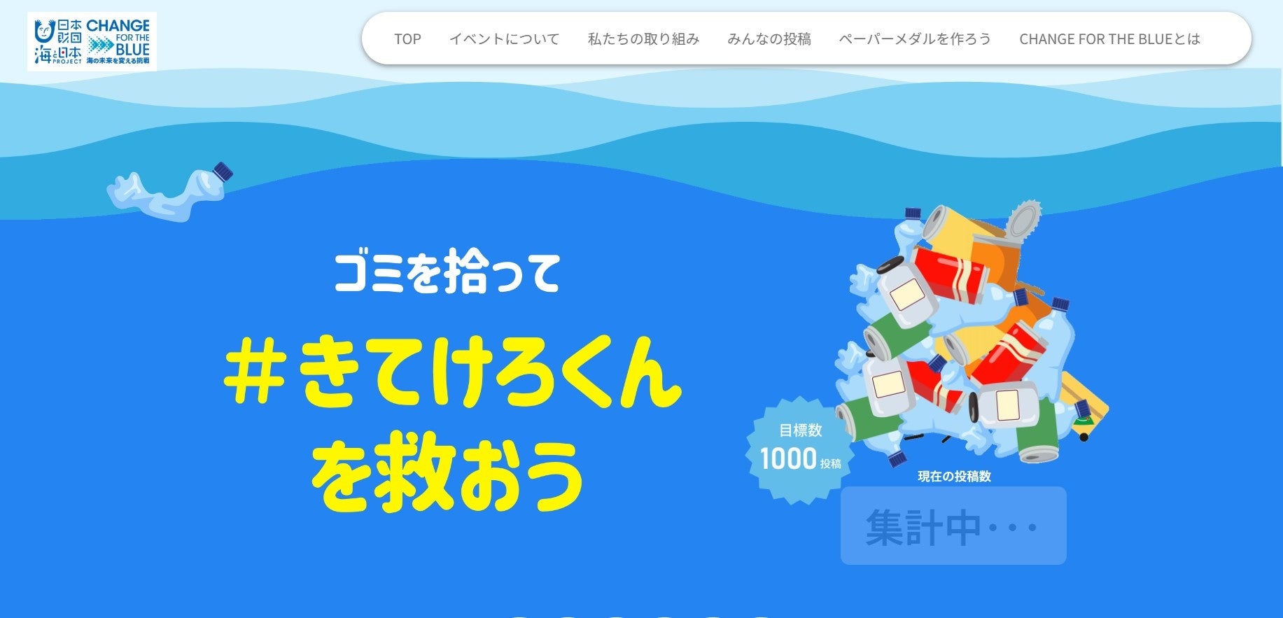 国民一人ひとりが海洋ごみの問題を自分ごと化し、”これ以上、海にごみを出さない”という社会全体の意識を向上させていくことを目標に、日本財団「海と日本プロジェクト」の一環として2018年11月から推進しているプロジェクトです。