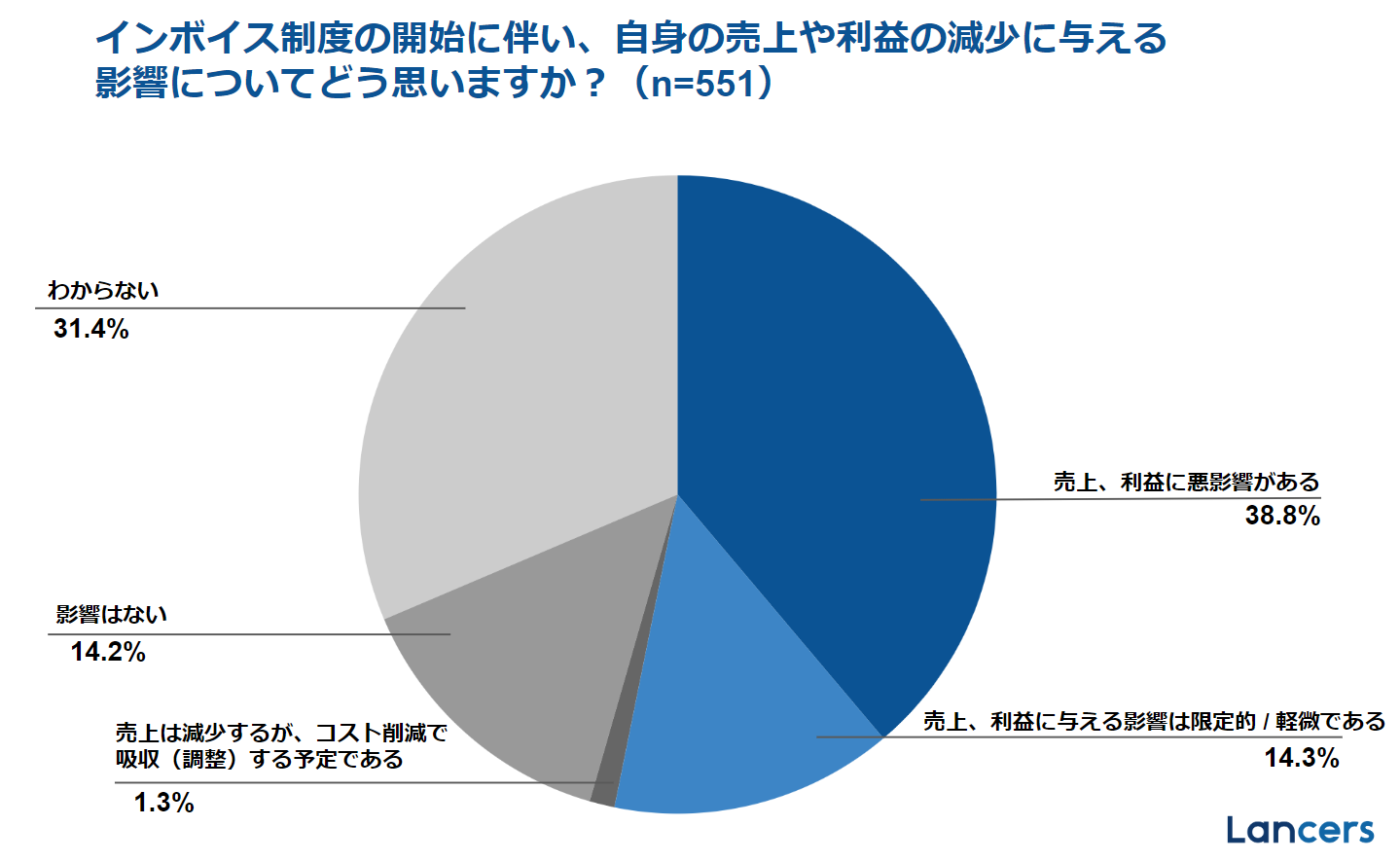 4割近くのフリーランスが制度開始に伴い「売り上げや利益に悪影響がある」と回答。現状では「わからない」という回答も3割以上
