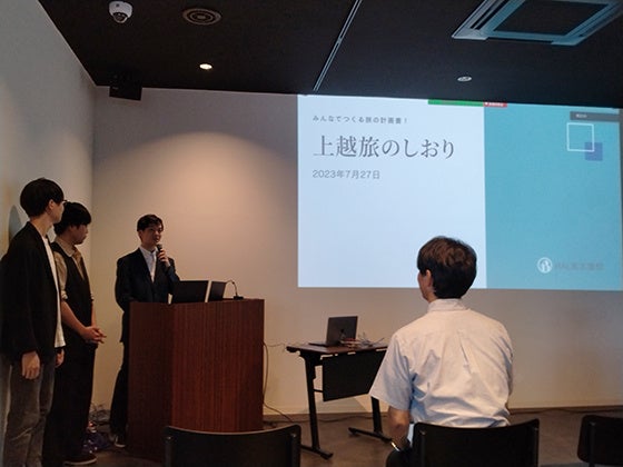 4月にNTT DXパートナー様よりオリエンテーションをいただき、上越市の課題である「年間を通して観光客が訪れるしくみづくり」に取り組んでまいりました。学生たちは若者ならではの自由な発想と技術力を生かして、チームで企画・サービスを制作。制作したアプリやサービスは、①UI/UX ②技術 ③持続性の観点で評価され、上越市に招待される優秀3チームが決定。選ばれた3チームは、上越市職員の皆さまの前でプレゼンテーションを行いました。
