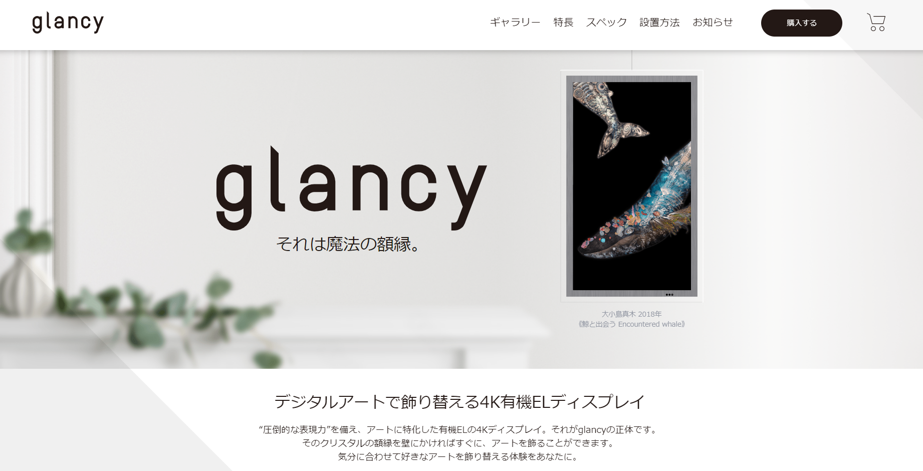 「glancy™」は有機ELディスプレイのエキスパートであるJOLEDが開発した次世代インテリアで、お部屋にいながらアートや風景を自由に飾り替え、デジタルならではの新しい作品鑑賞の体験をお届けします。