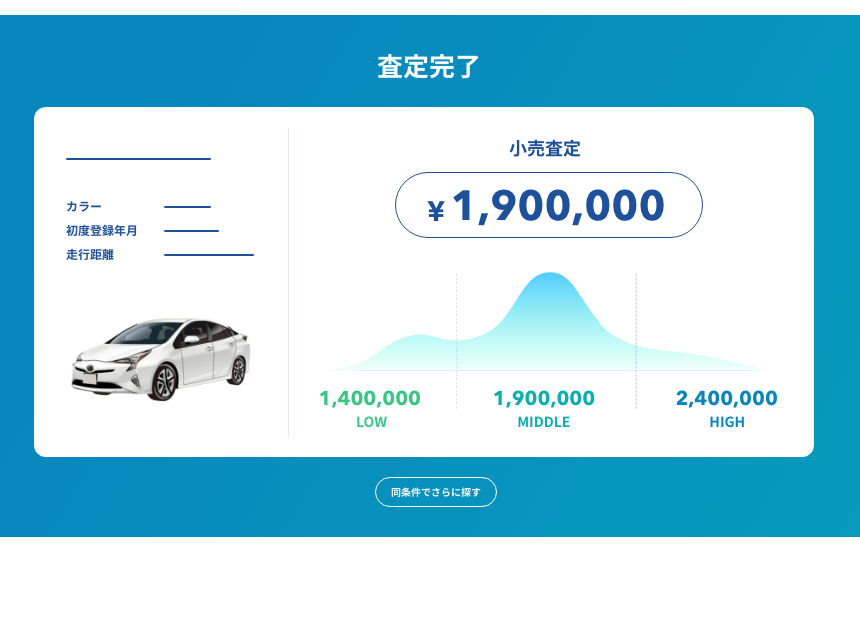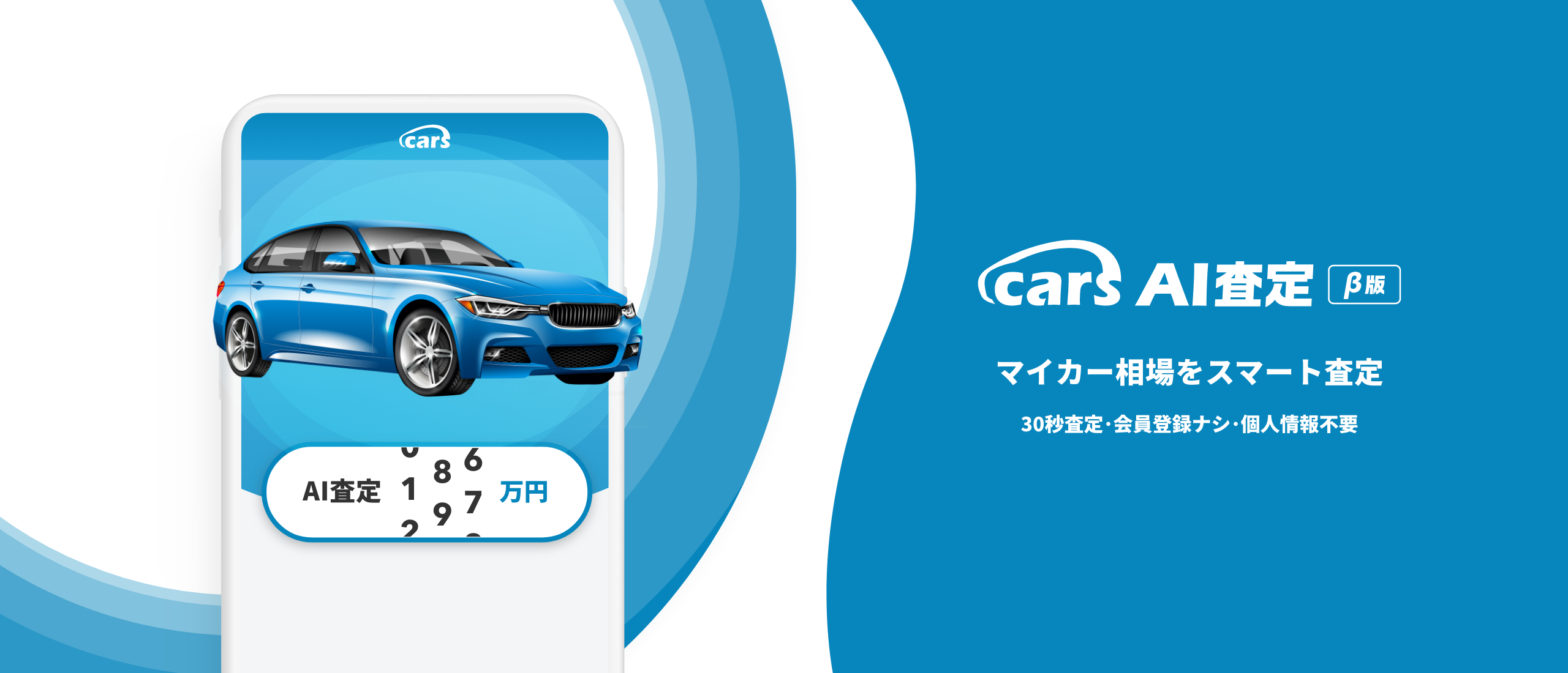 carsの「AI査定」は、中古市場の売買データから独自のアルゴリズムで対象車両の相場を瞬時に算出するサービスです。車両の相場価格は日々変動しますが、carsの「AI査定」は変動するデータを常に自動更新してAIが対象車両の価格相場を自動算出。マイカーの参考価格を手軽に調べることができます。