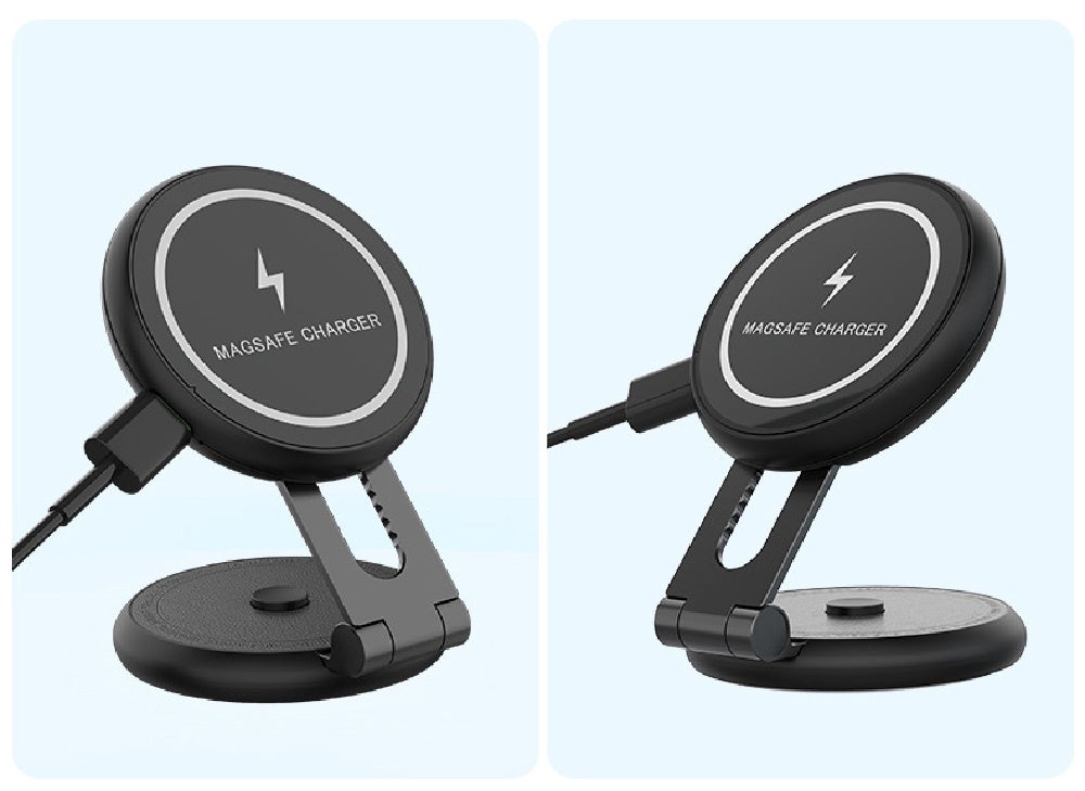 ライトの台座にはワイヤレス充電が内蔵されており、iPhone 15等のワイヤレス充電対応のiPhoneや