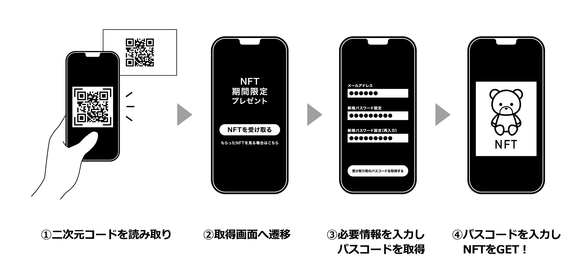 この「Cocollet™」は、アプリ等のダウンロード不要でNFTを取得・保有できる安全性の高いNFTウォレットです。スマートフォンから二次元コードを読み込み、メールアドレスとパスワードの情報のみでNFTの入手・コレクションを始めることができます。また、NFTを複数集めることで新たなNFTを生成する「コンプリート特典機能」を持たせ、世界にひとつだけのデジタル資産としての価値を持つNFTに、さらに集めたくなる気持ちを高めます。また、リアルイベント等でのプロモーションに活用いただくことで、新たな体験価値を提供いたします。