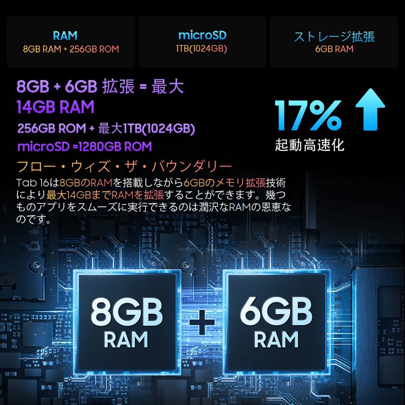 • 大容量メモリ(14GB(8GB+6GB拡張)RAM+256GB ROM+1TB TF拡張)