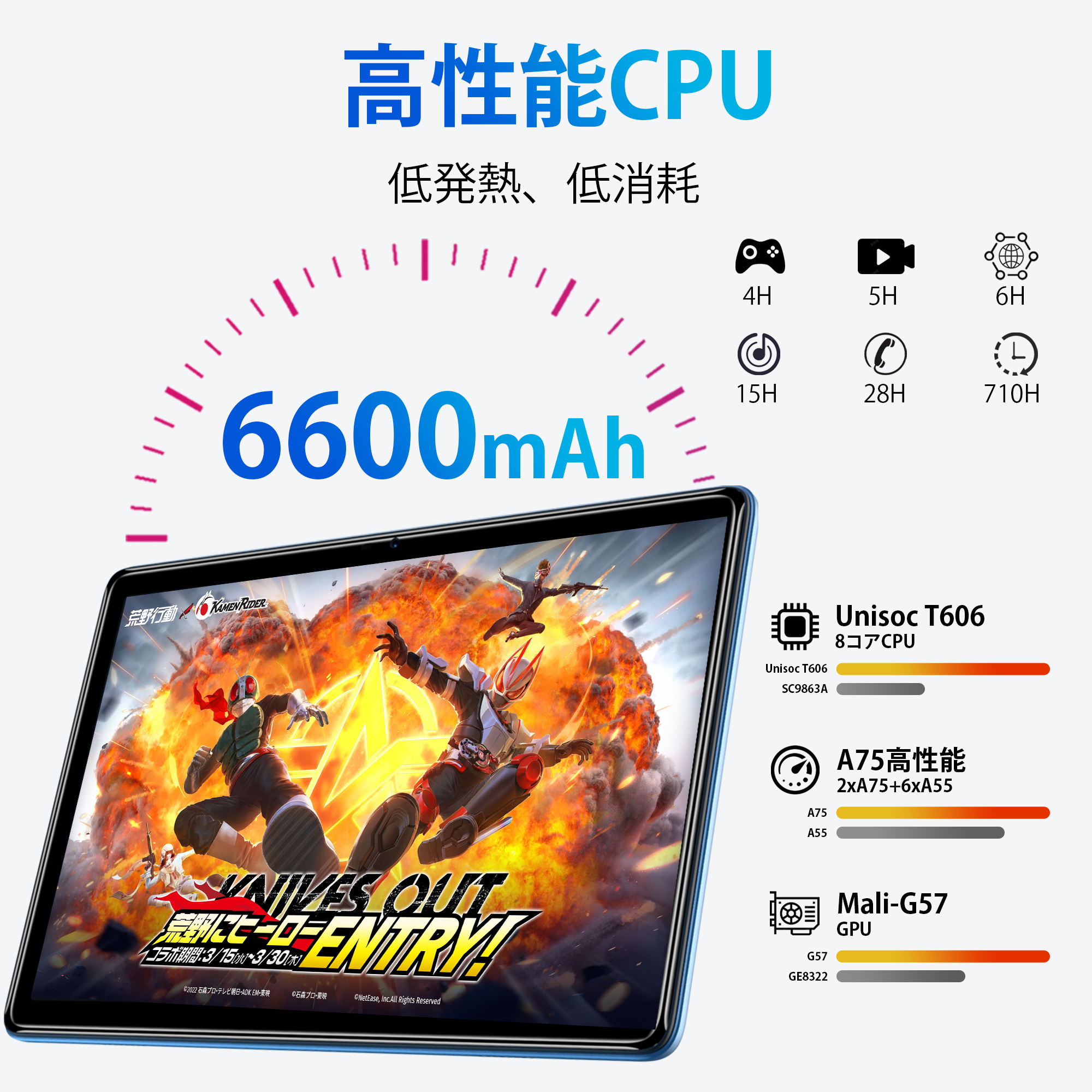 10インチ / Android 13 / 11GB(6GB+5GB拡張)RAM+128GB ROM+1TB 拡張 / FHD IPSディスプレイ / 4G LTE+WiFiモデル / Widevine L1対応 / GPS機能サポート / 3.5mmヘッドホンジャック