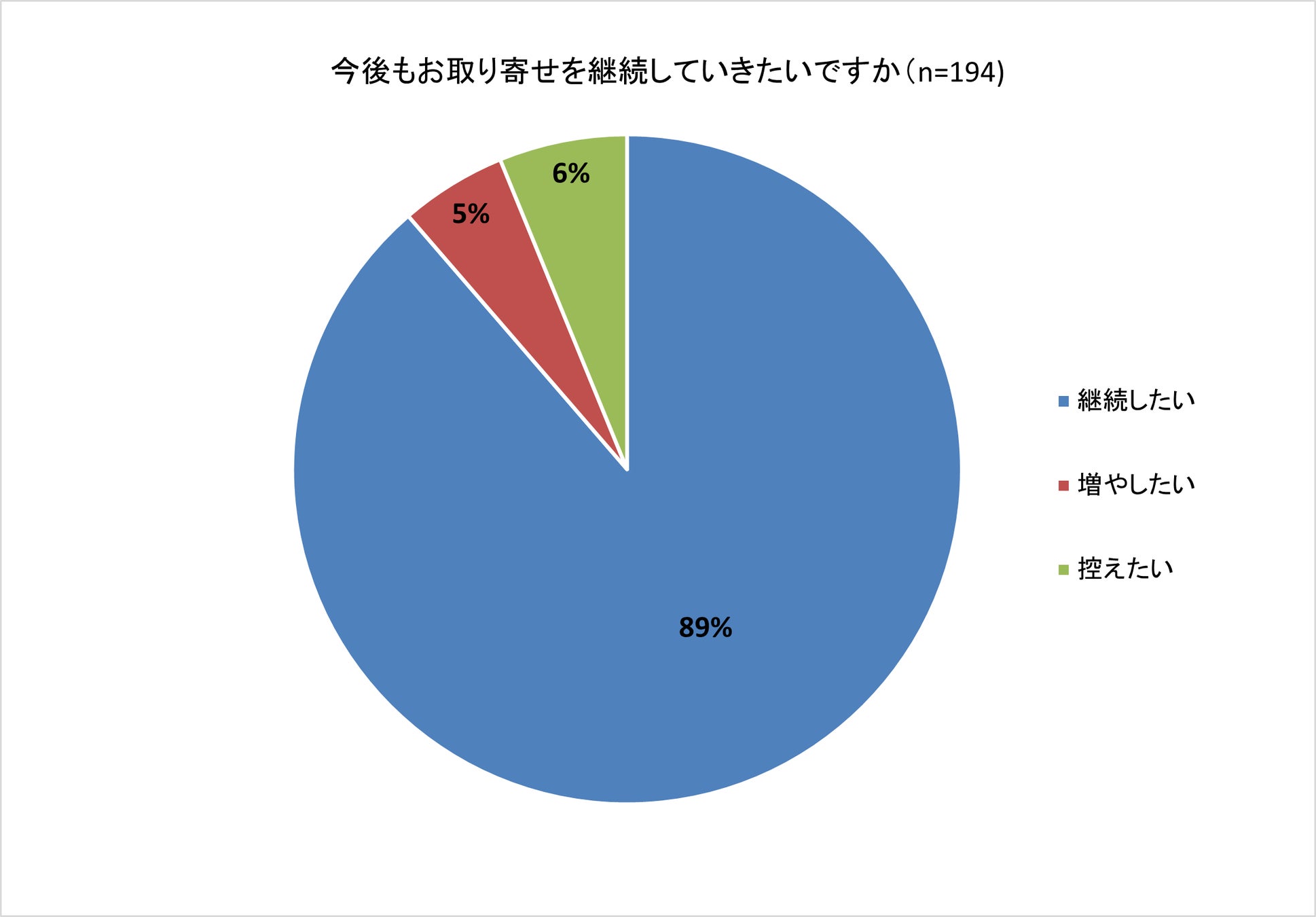 今後のお取り寄せについて約9割が「継続したい」と回答しています。この1年で消費者の動きも活動的になったり、相次ぐ値上げで消費者マインドが冷え込むなかでも、シーズンギフトや身近な方へのカジュアルギフト、贅沢したい時、お得に楽しむアイテムとしてお取り寄せの需要は底堅いものと推測されます。