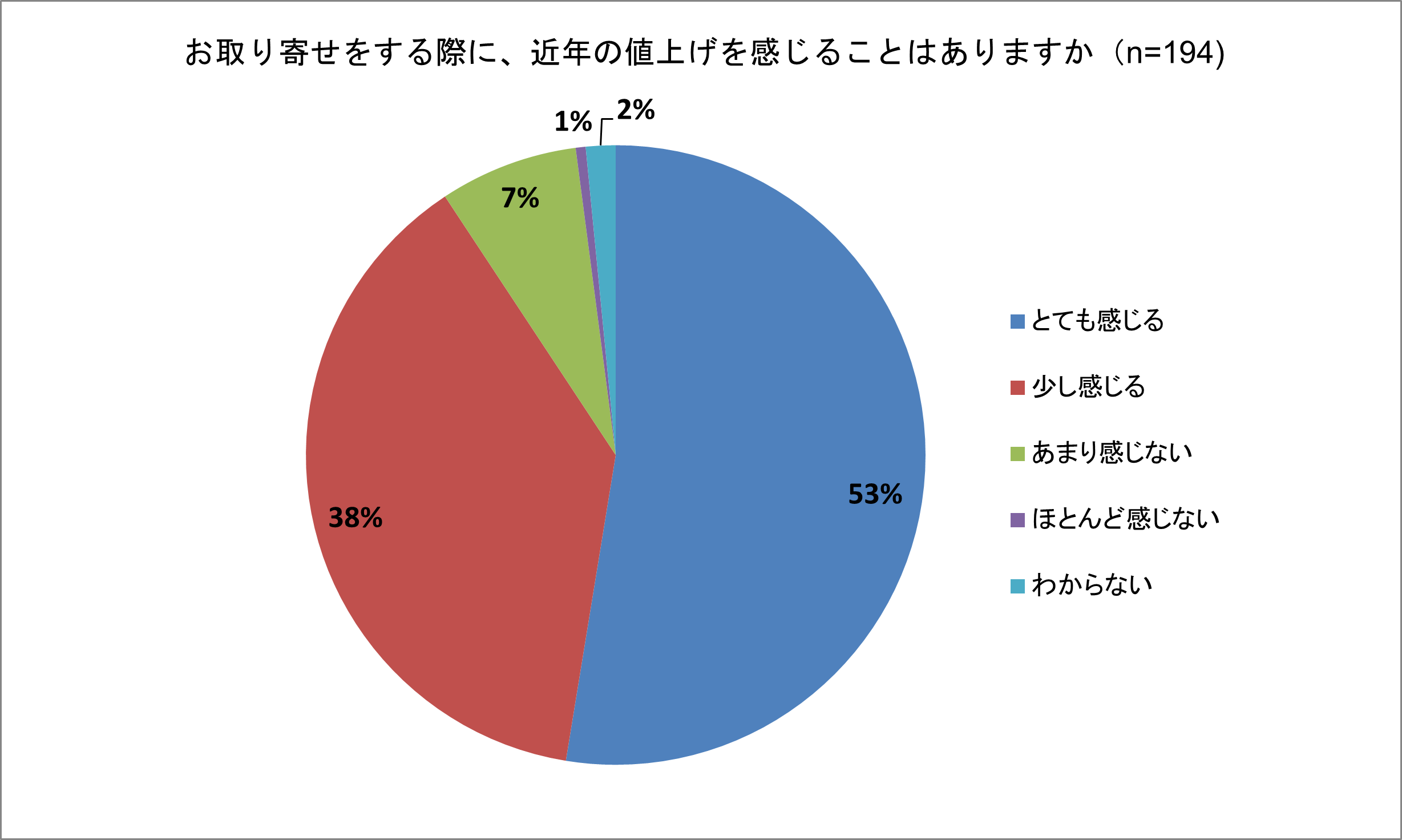(4)お取り寄せでも9割が「値上げを感じる」と回答