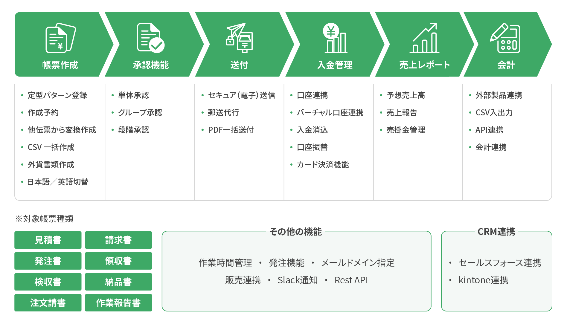 クラウド上で簡単に見積書や請求書をはじめとする書類を作成でき、承認、郵送代行や電子送付、入金管理や売上レポートの表示ができる請求管理サービスです。2011年製品リリース以降、個人事業主から中堅企業まで幅広い企業様にご利用いただいています。また、2018年11月には株式会社リコーの100%子会社となり、リコーグループ内で製品機能の共同開発ならびに販売を強化することで機能開発・販売促進を進めてまいりました。