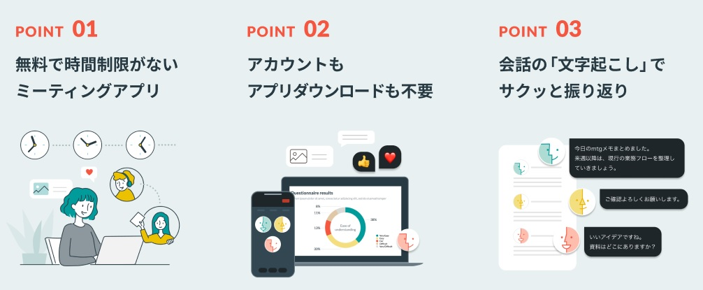 無料でずっと話せるミーティングアプリ「パルケミート」では、誰でも気軽にフラットなコミュニケーションができるウェブ会議の実現を目指しています。