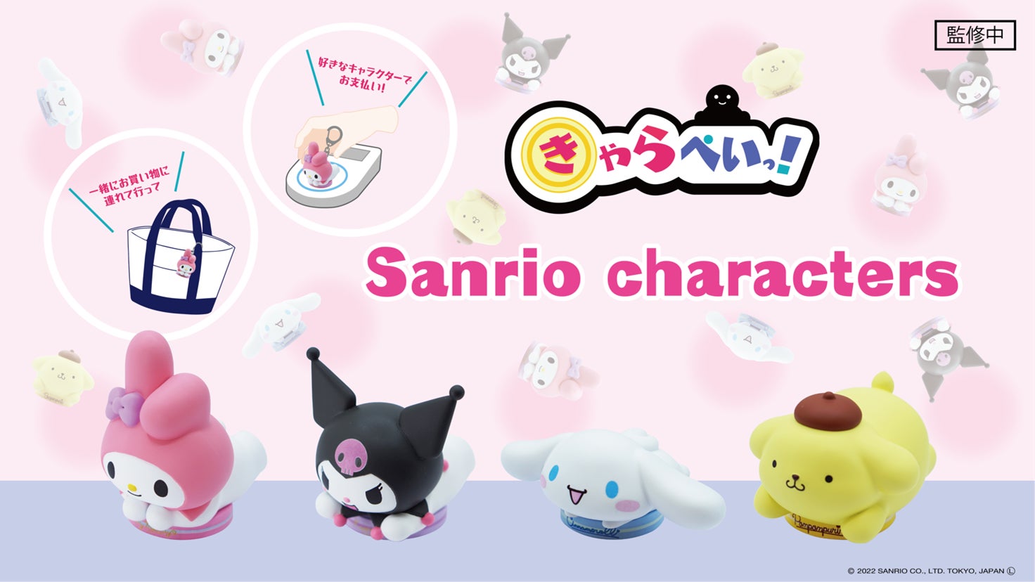 このたび、 eStreamよりキーホルダータイプのキャッシュレスフィギュア『きゃらぺいっ!』が誕生しました。ミニフィギュアにEdy機能がついた小型キーホルダーで、第1弾としてサンリオの人気キャラクター「シナモロール」「ポムポムプリン」「マイメロディ」「クロミ」が登場します。「楽天市場」に出店している「楽天Edyオフィシャルショップ」(https://www.rakuten.ne.jp/gold/edyshop/)、「eStream Store」などで販売予定です。