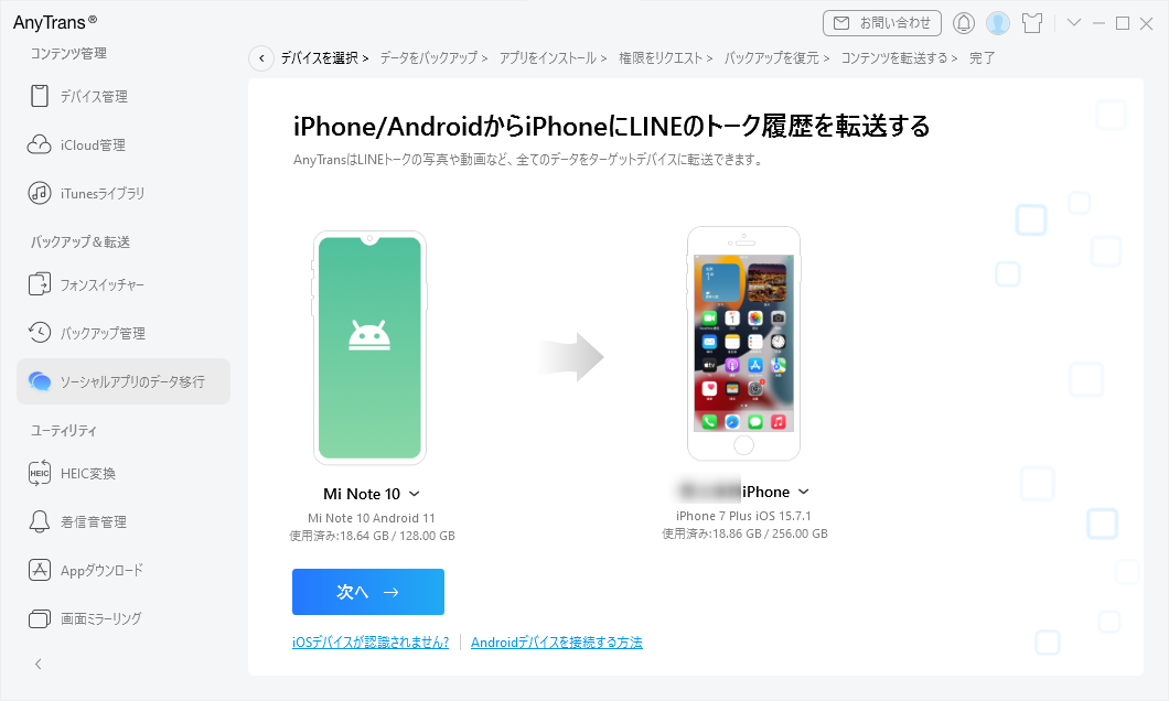 Step3.デバイスを確認してから、「次へ」ボタンをクリックしてください。