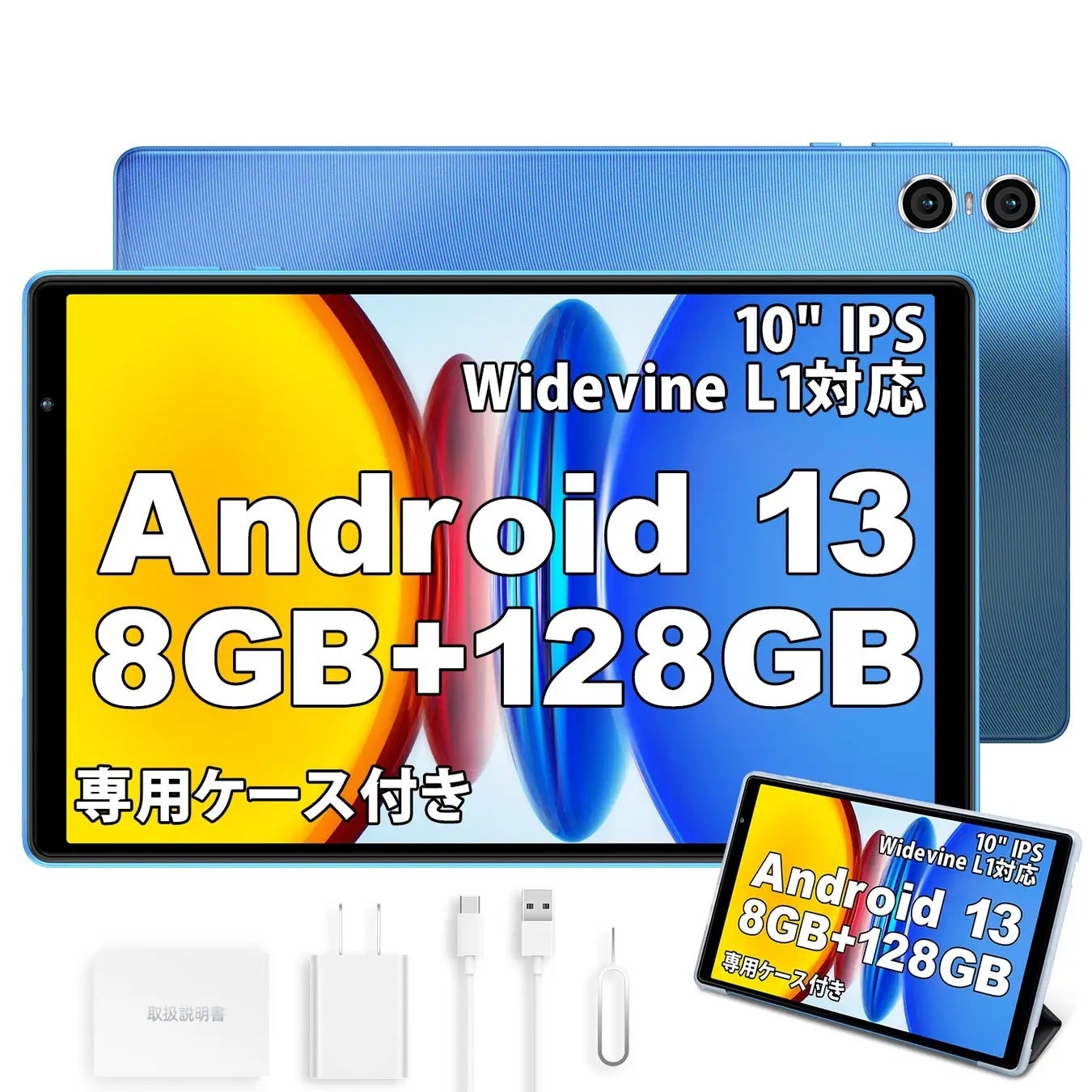10インチ / Android 13 / 8GB(4+4GB拡張)RAM+128GB ROM+1TB拡張 / WideVine L1対応 / WiFiモデル / デュアルカメラ / 画面分割 / 3.5mmヘッドフォンジャック / 児童守護