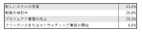IT技術関連者は自身のスキルセットの向上とプロジェクト管理能力の向上に注力しており、これらのステップを通じてIT人材不足に対処しようとしています。また、転職や独立したプロフェッショナルとしての活動を検討する人も一部存在します。