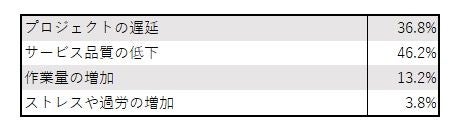 またその大半が、自社・自身のことではなく、プロジェクト遅延や開発における影響と回答されております。