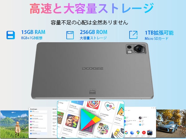 最大8GBのメモリ+最大7GBの拡張可能な仮想メモリ、合計15GBの融合メモリを搭載しています。これにより、タブレットは複数のアプリケーションを簡単かつスムーズに切り替えることができ、ラグをなくし、高速でスムーズな操作体験を提供します。DOOGEE T20 android タブレット 10インチ wi-fiモデルには256GBの大容量ストレージも搭載されているため、メモリ不足を心配する必要はもうありません。 大容量の1TBまでのmicroSDカードでストレージ容量をさらに拡張できます。(FAT32、exFATフォーマットカードは別売り)