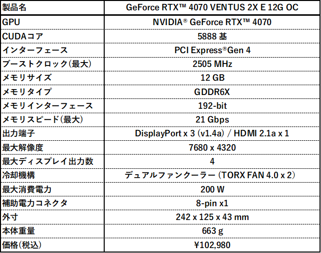 https://jp.msi.com/Graphics-Card/GeForce-RTX-4070-VENTUS-2X-E-12G-OC