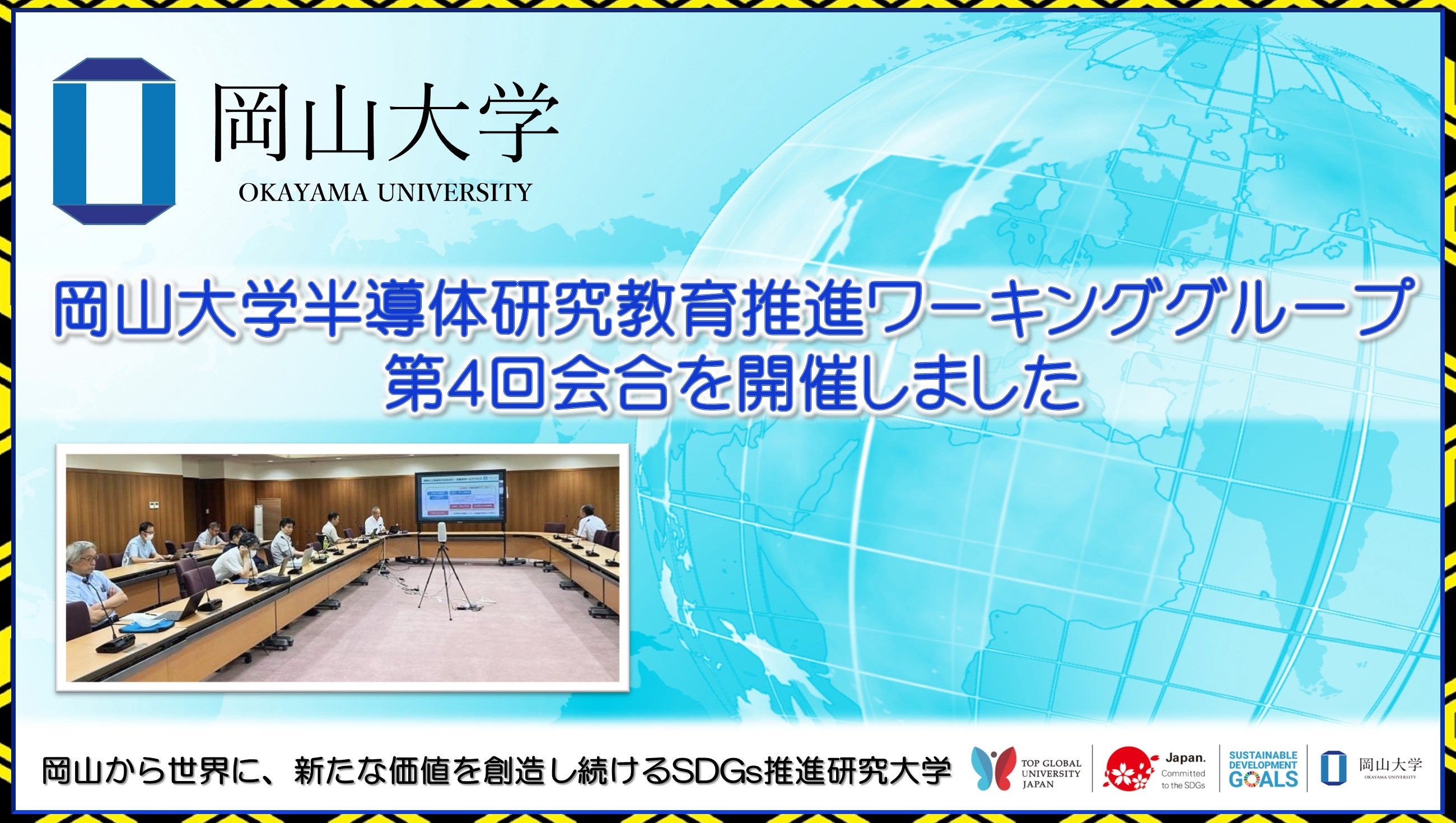 国立大学法人岡山大学(本部:岡山市北区、学長:那須保友)は、2023年9月11日、岡山大学半導体研究教育推進ワーキンググループ(WG)の第4回会合を会場(本学津島キャンパス本部棟)とオンラインを併用したハイブリッド形式で開催しました。