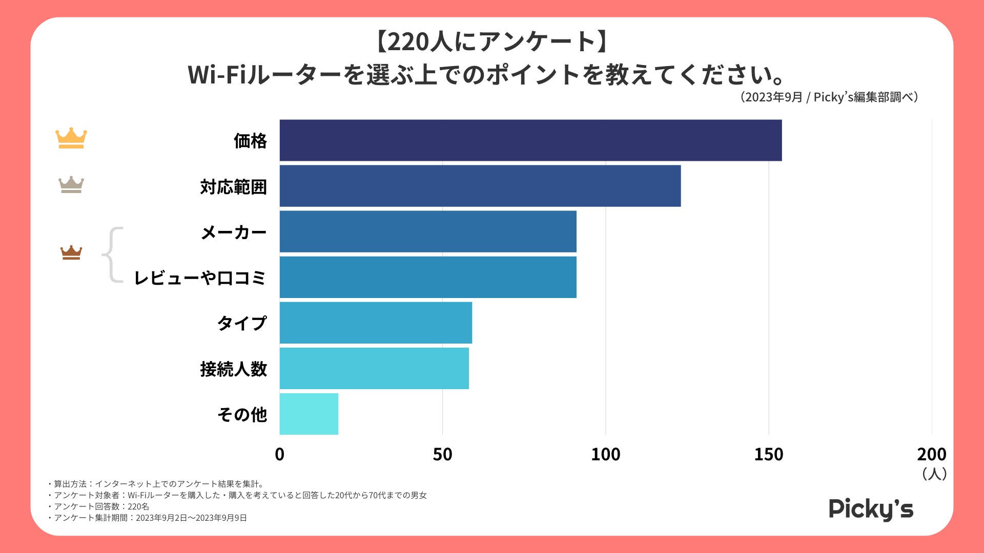 「Picky’s」は、インターネットショッピングにおいて、購入前に試せない・選ぶべきものがわからないという課題の解決を目標に、あらゆる商品のおすすめランキングや検証レビューを紹介するサイトです。このたびPicky’s(https://rentry.jp/note/)では、Wi-Fiルーターについてインターネット上でアンケート調査を行いましたので発表いたします。