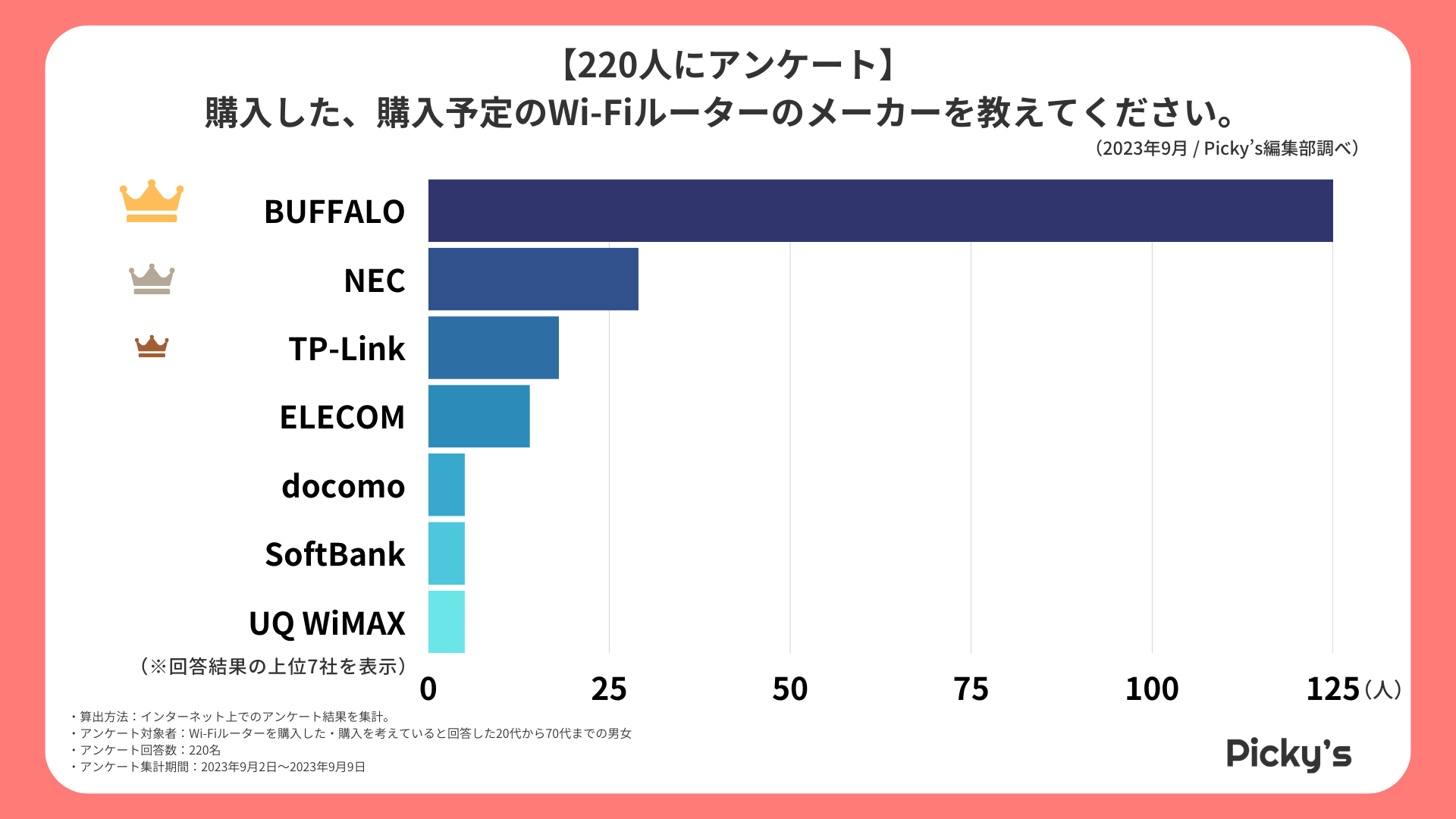 その次に「NEC」「TP-Link」「ELECOM」のメーカーが選ばれました。